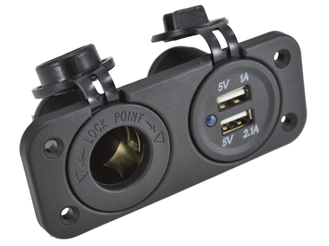Gniazdo zapalniczki + podwójne USB z panelem.