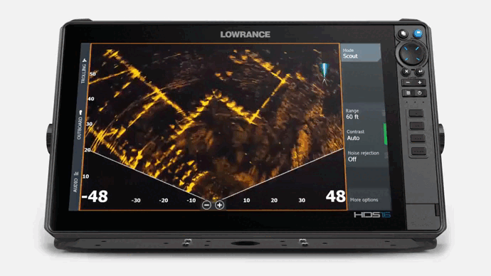 HDS® PRO wprowadza również nową opcję nakładki na mapę, umożliwiającą przeglądanie trybu ActiveTarget® Scout lub trybu silnika zaburtowego Ghost® 360 bezpośrednio na ekranie mapy.