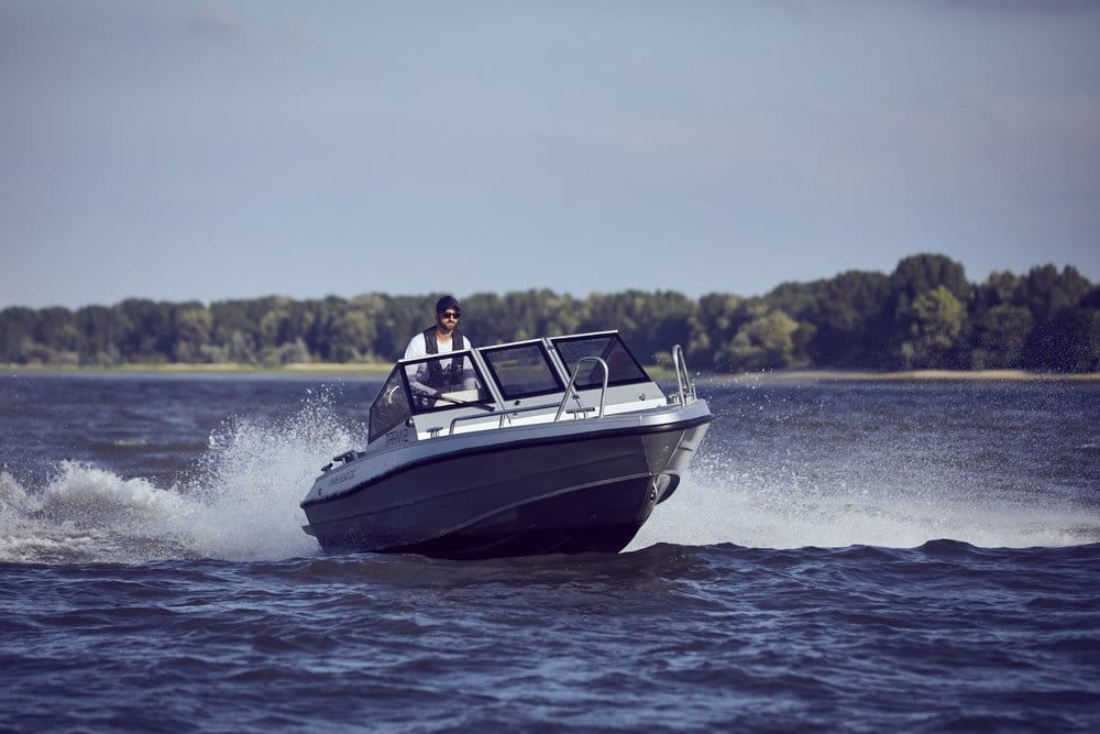 jest to łódź z podwójną konsolą kierowniczą. Fakt, że można do tej łodzi zamontować silnik o mocy 150KM dowodzi bezpiecznego i wytrzymałego kadłuba. W połączeniu z dobrą przestrzenią do przechowywania, dużymi uchwytami i komponentami zaprojektowanymi do użytku, otrzymujesz łódź, która świetnie sprawdza się w upalne jak i surowe, zimne dni.