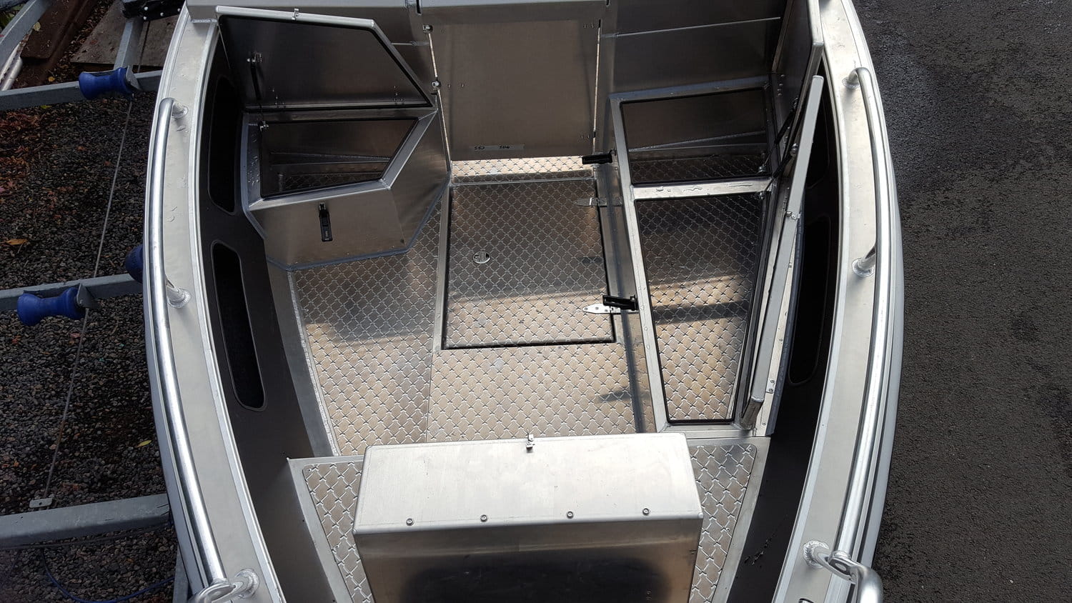 Zyskaj spokój ducha na łodziach dzięki spawanym elementom kokpitu i przedniej szyby. Zaprojektowane z myślą o wytrzymałości, te elementy wytrzymują nawet najtrudniejsze warunki pogodowe i fale, zapewniając trwałość. Działają również jako niezawodna tarcza i chronią przed wiatrem.