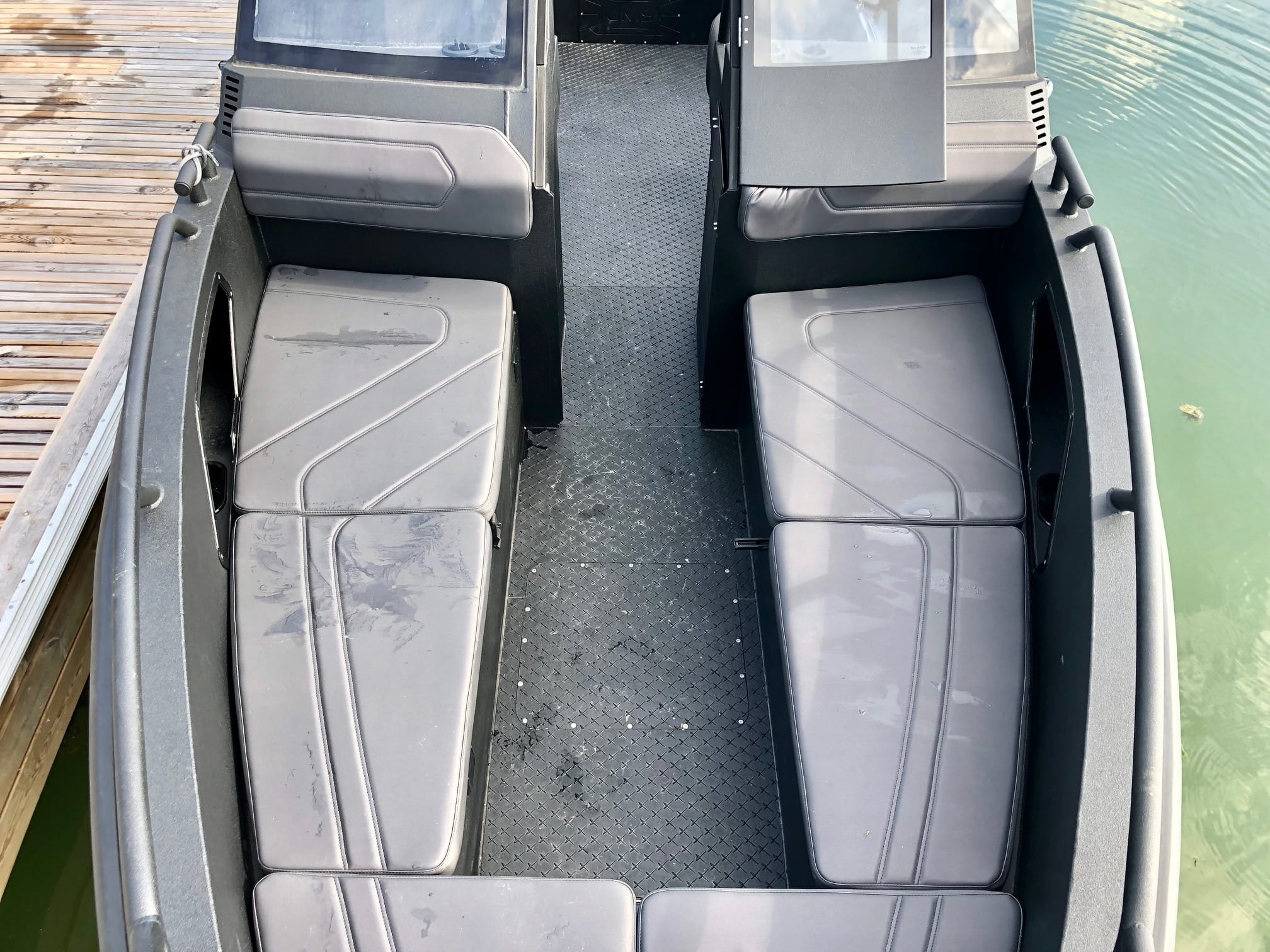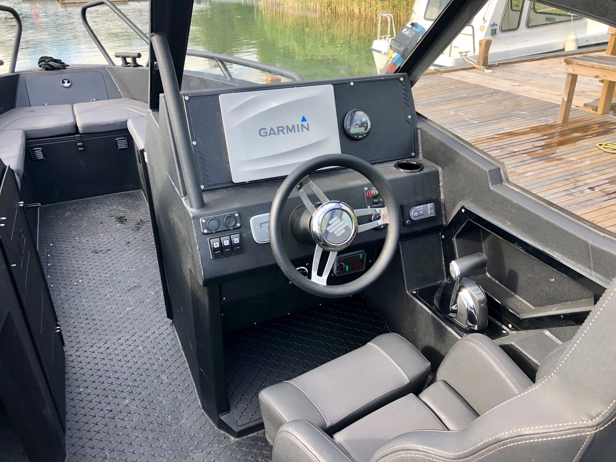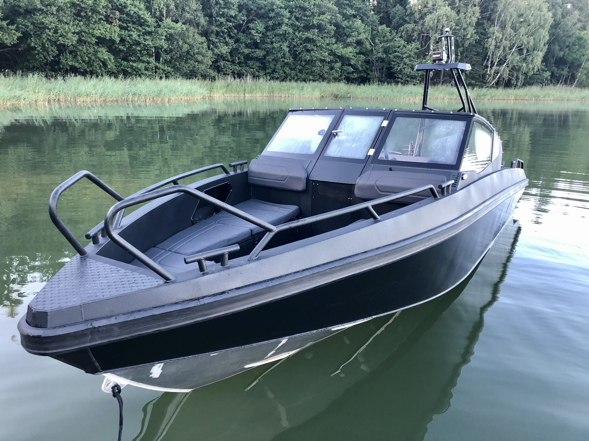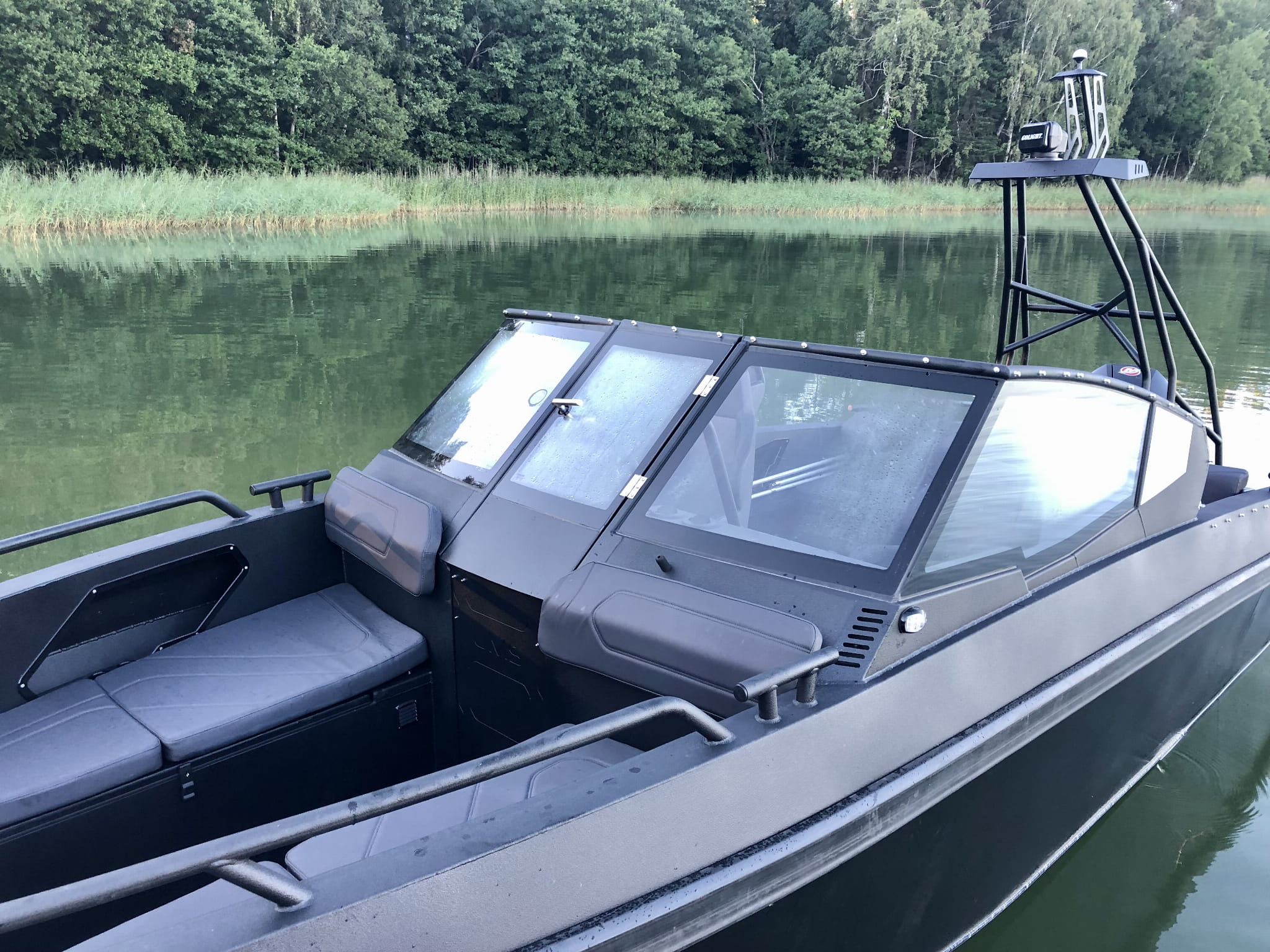 to łódź z podwójną konsolą kierowniczą , aluminiowa jednostka o nowoczesnej konstrukcji i bogatym standardowym wyposażeniu, która zapewnia nie tylko osiągi dzięki silnikowi o mocy 350 KM, ale także komfort, bezpieczeństwo i funkcje wynikające z przebiegu, jak i w trakcie rejsów. Opcjonalne wyposażenie pozwala na jeszcze większe rozszerzenia do indywidualnych potrzeb użytkownika, co stwarza zagrożenie dla osób poszukujących i docierających do jednostek.