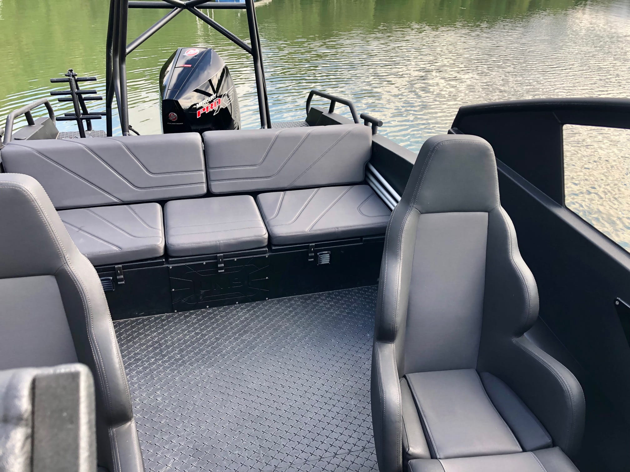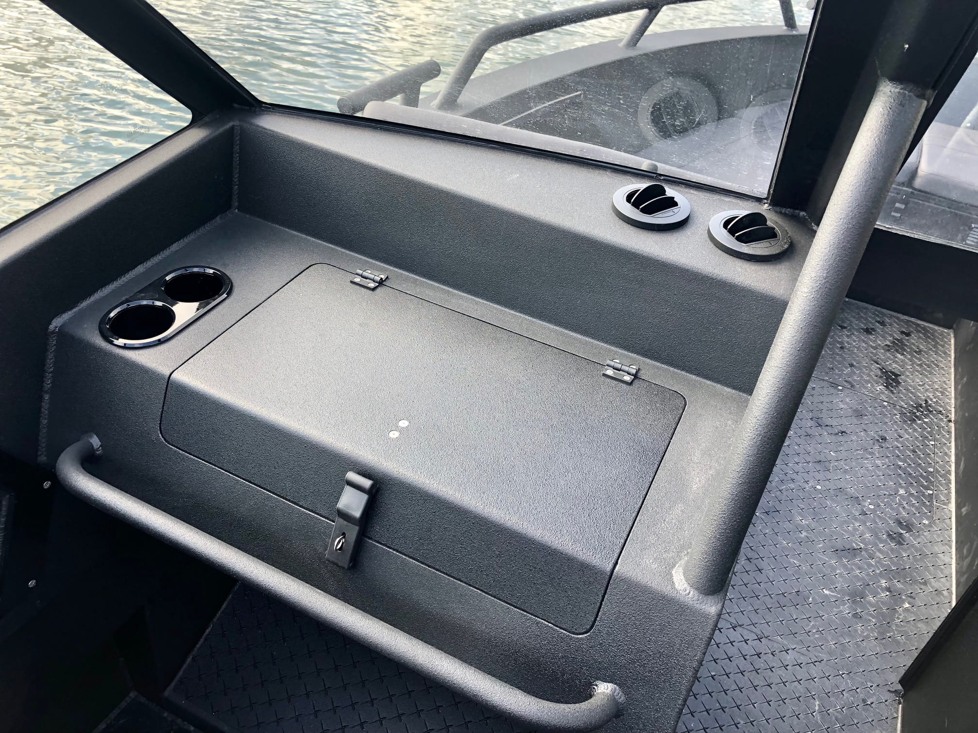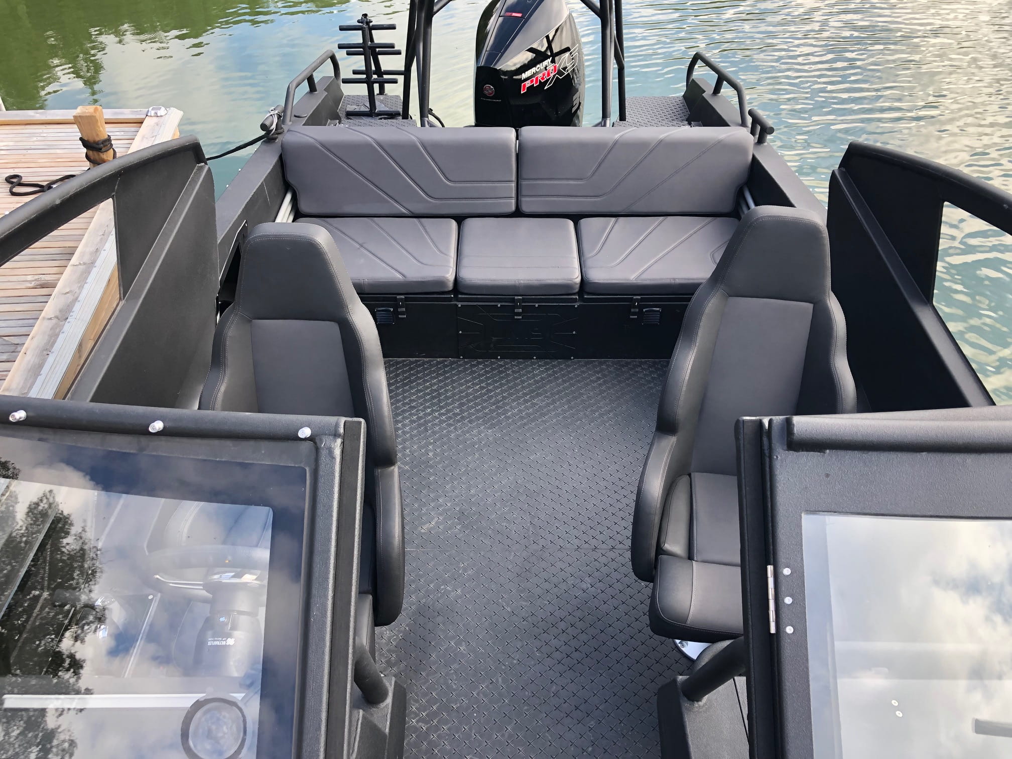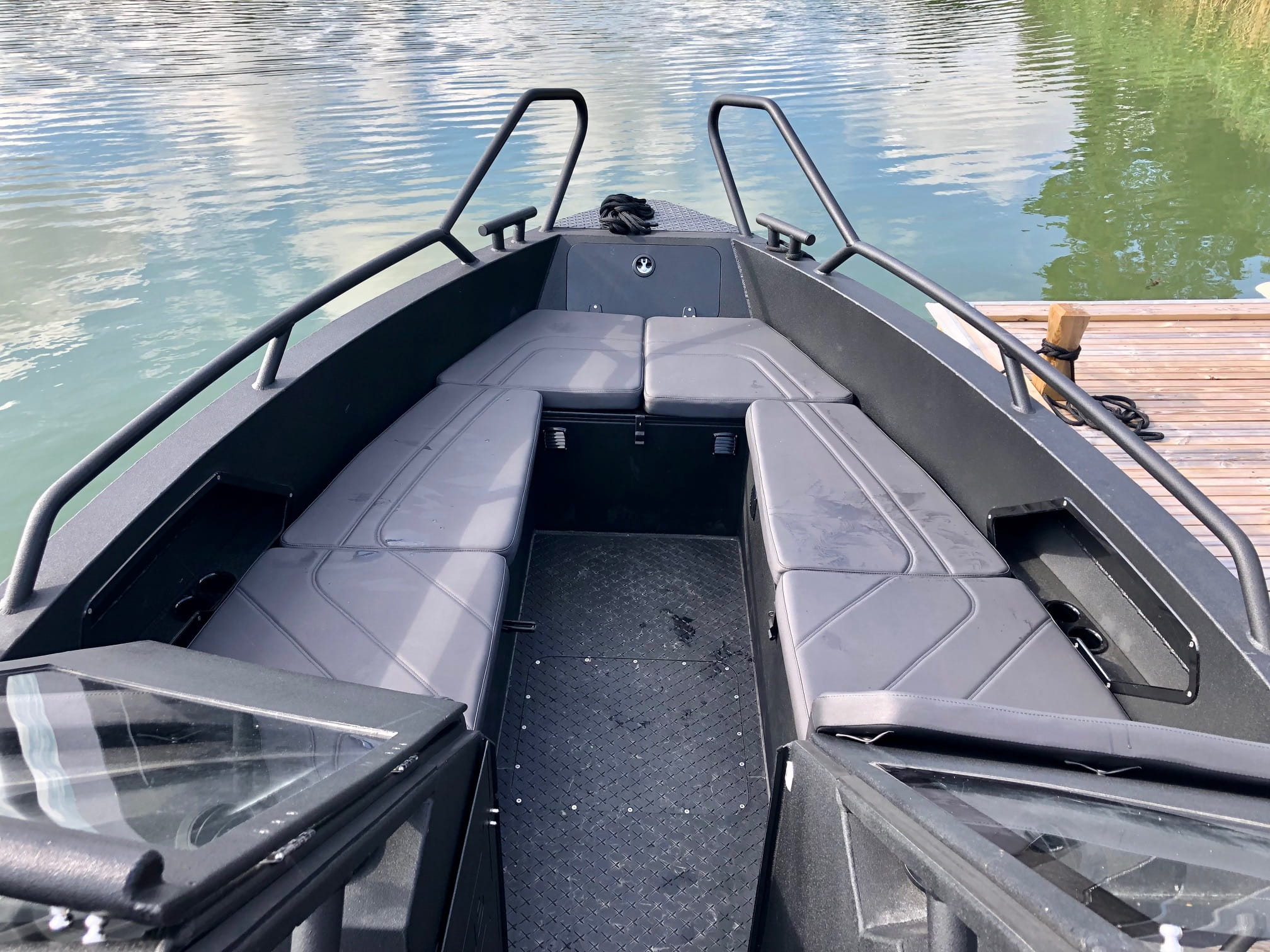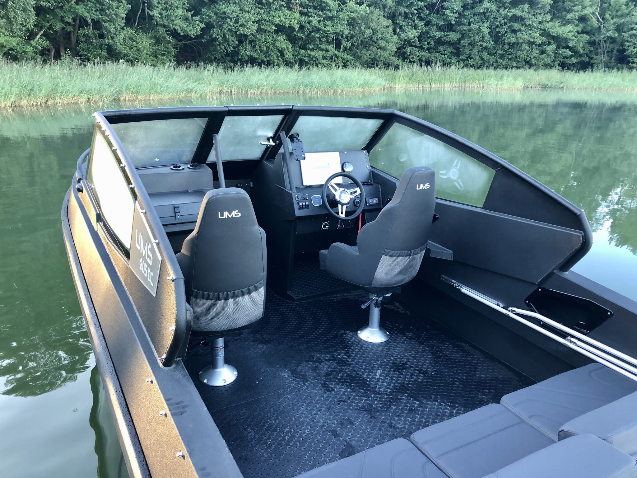 to łódź z podwójną konsolą kierowniczą , aluminiowa jednostka o nowoczesnej konstrukcji i bogatym standardowym wyposażeniu, która zapewnia nie tylko osiągi dzięki silnikowi o mocy 350 KM, ale także komfort, bezpieczeństwo i funkcje wynikające z przebiegu, jak i w trakcie rejsów. Opcjonalne wyposażenie pozwala na jeszcze większe rozszerzenia do indywidualnych potrzeb użytkownika, co stwarza zagrożenie dla osób poszukujących i docierających do jednostek.