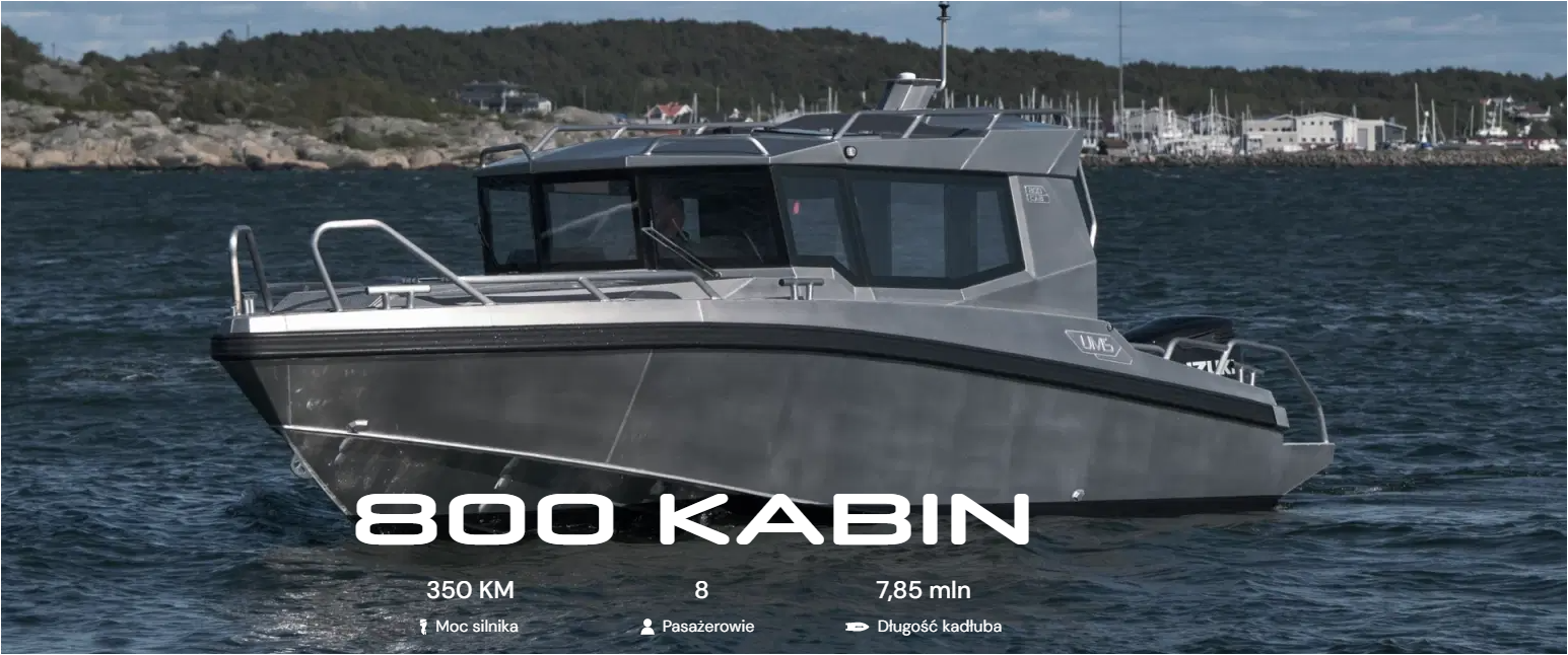 W przypadku większych modyfikacji firmy UMS 800 Cabin oferuje przytulna kabina sypialna na dziobie, która pomoże wygodnie spędziłem kilka nocy na łodzi. Na górze że ze względu na swój rozmiar i wagę łódź jest optymalnie zasilany przez 300 KM silnik i może być wygodnie przewożony z przyczepą.