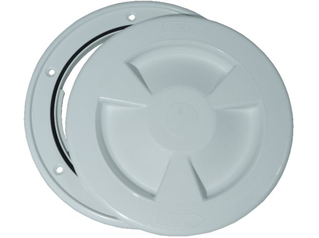 Okrągły luk inspekcyjny(rewizja, dekiel, holt). Wykonany z ASA – tworzywa sztucznego odpornego na promieniowanie UV. Szczelne zamknięcie dzięki gumowej uszczelce.