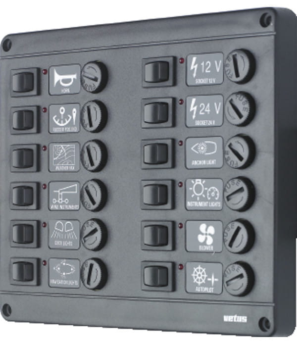 Panel wyłącznikowy Vetus z 12 bezpiecznikami topikowymi typu P12,12V P12F12