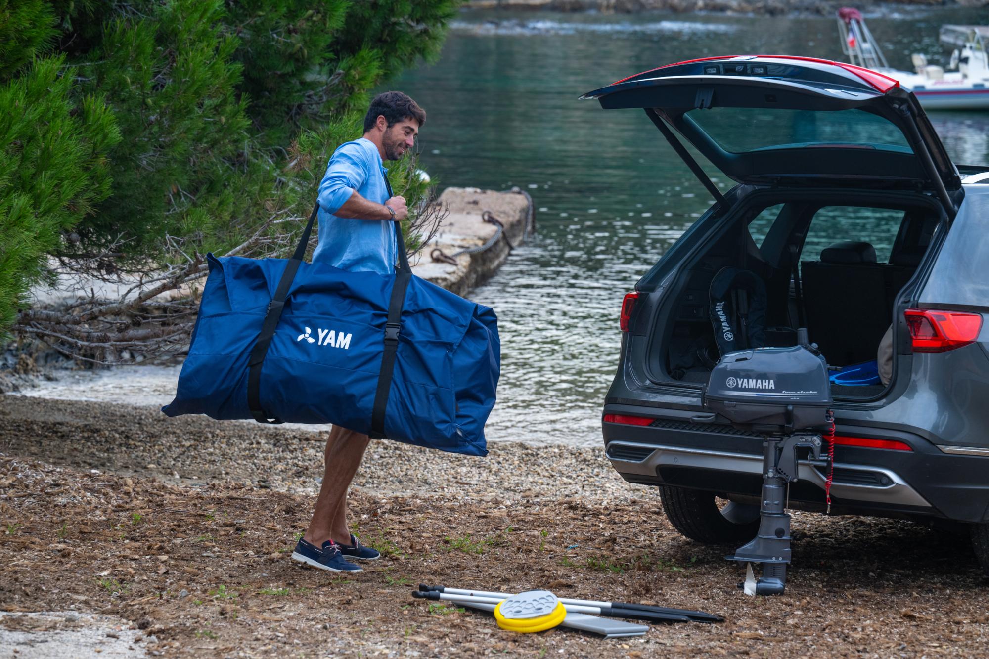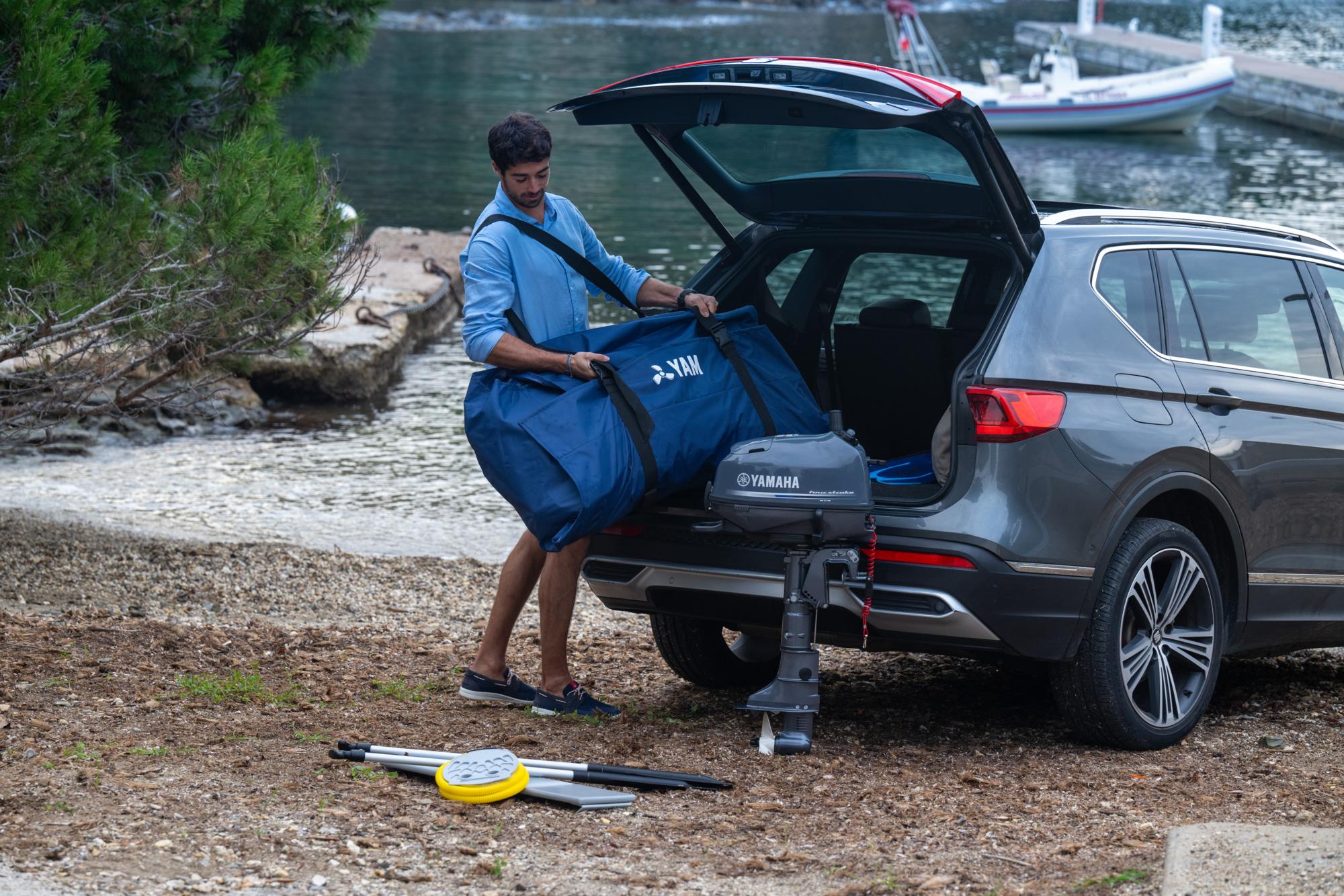 wysokiej jakości PVC i wzmocniona pawężą, która jest dostępna i dostępna. Konstrukcja jest idealnie dopasowana do zaburtowych Yamaha, w tych modelach Electric Drive