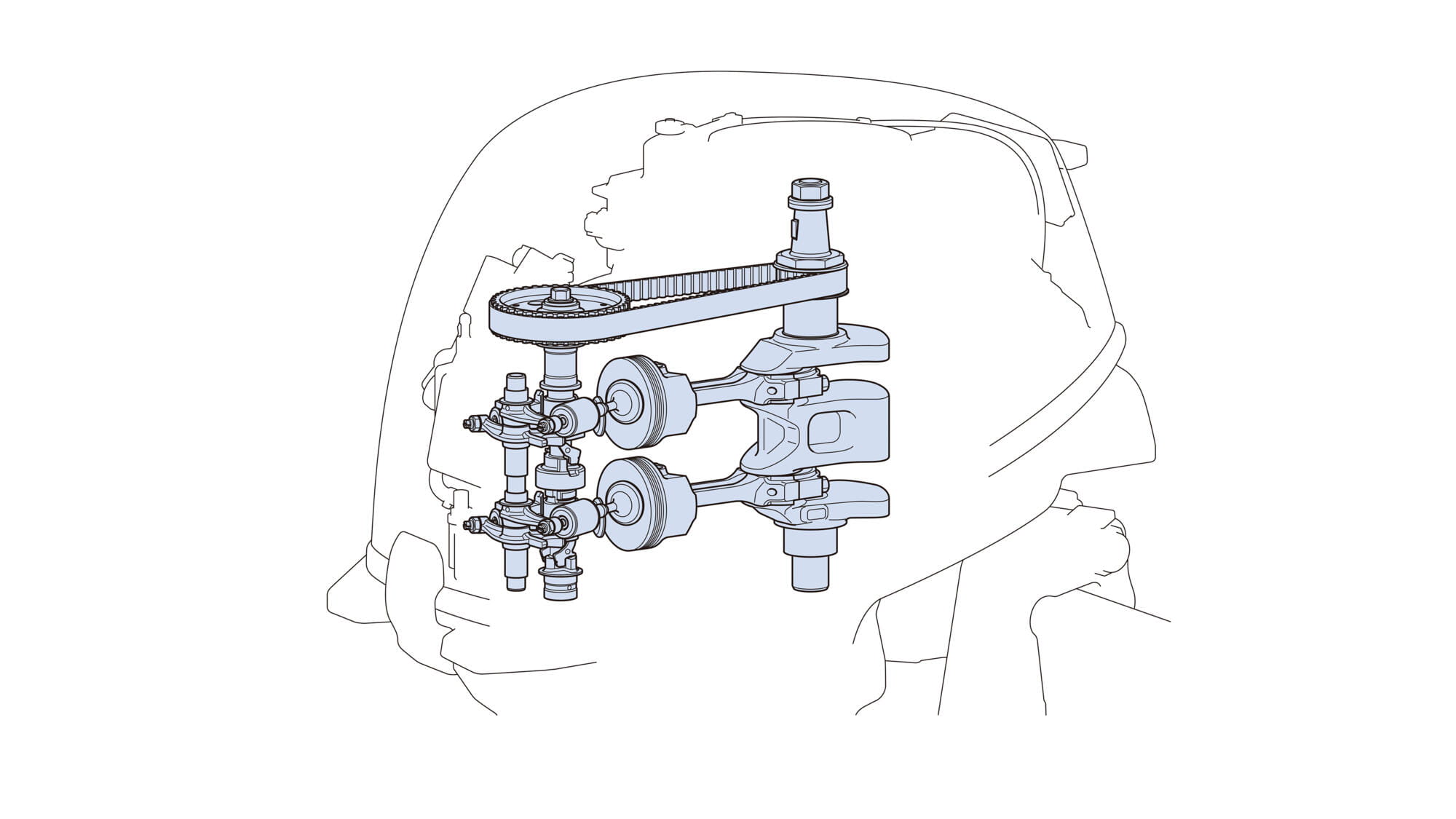 Liczba cylindrów/układ: 2/Rzędowy, SOHC