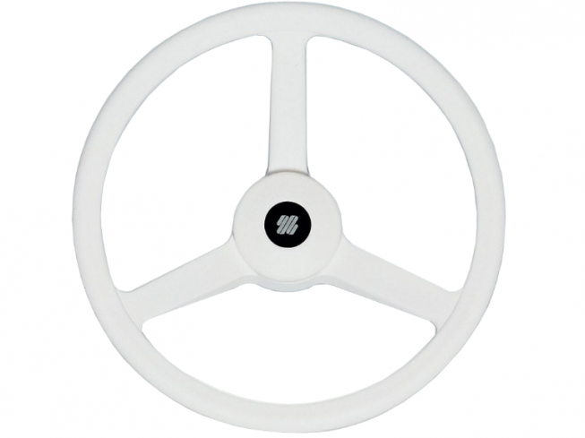 Włoska kierownica jachtowa. Wykonana z mocnego tworzywa sztucznego. Montaż kompatybilny ze wszystkimi jachtowymi przekładniami kierowniczymi.
